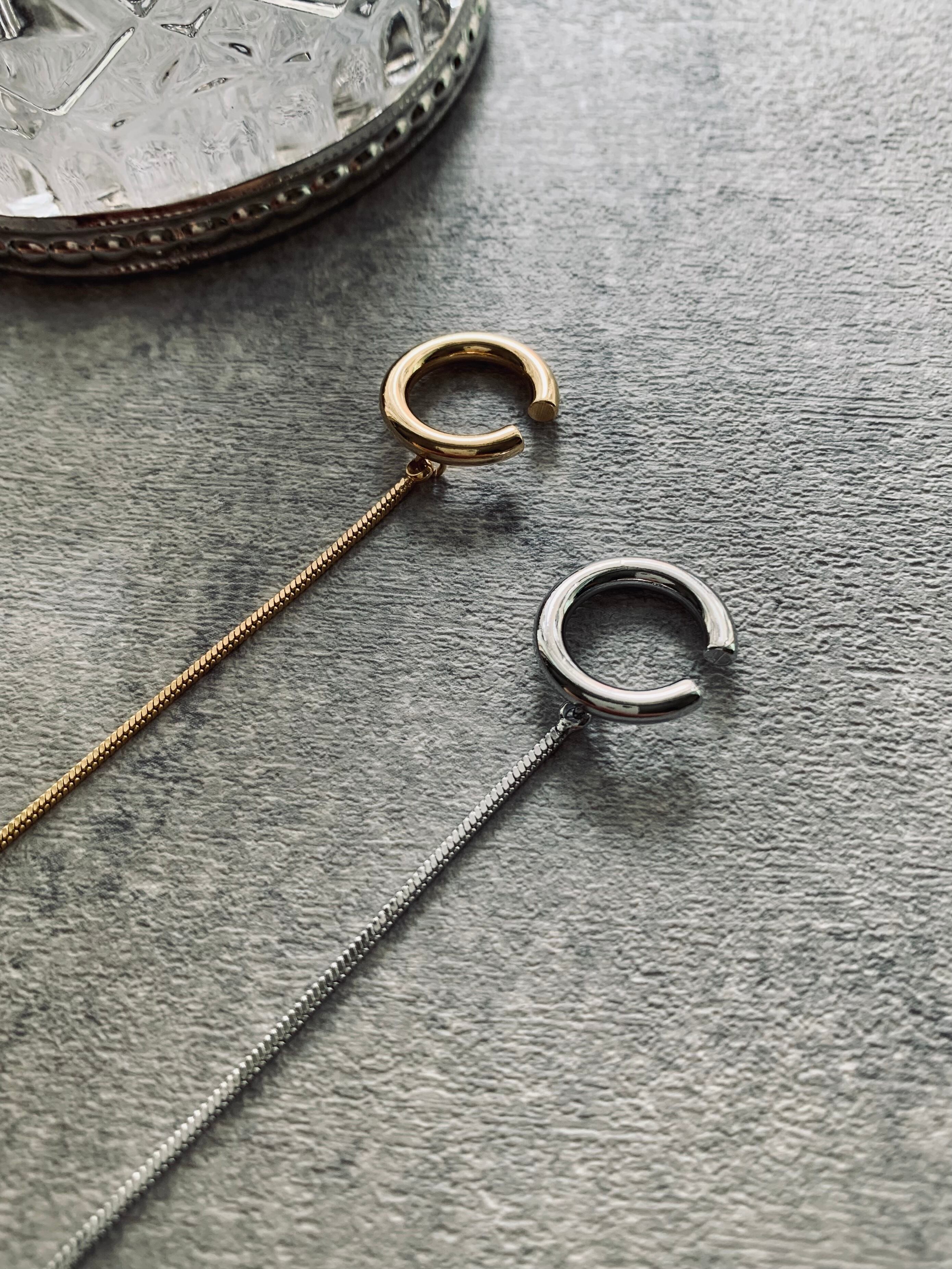 お手持ちのピアスやイヤカフと自由に合わせてみてください。