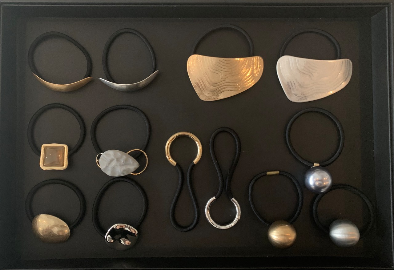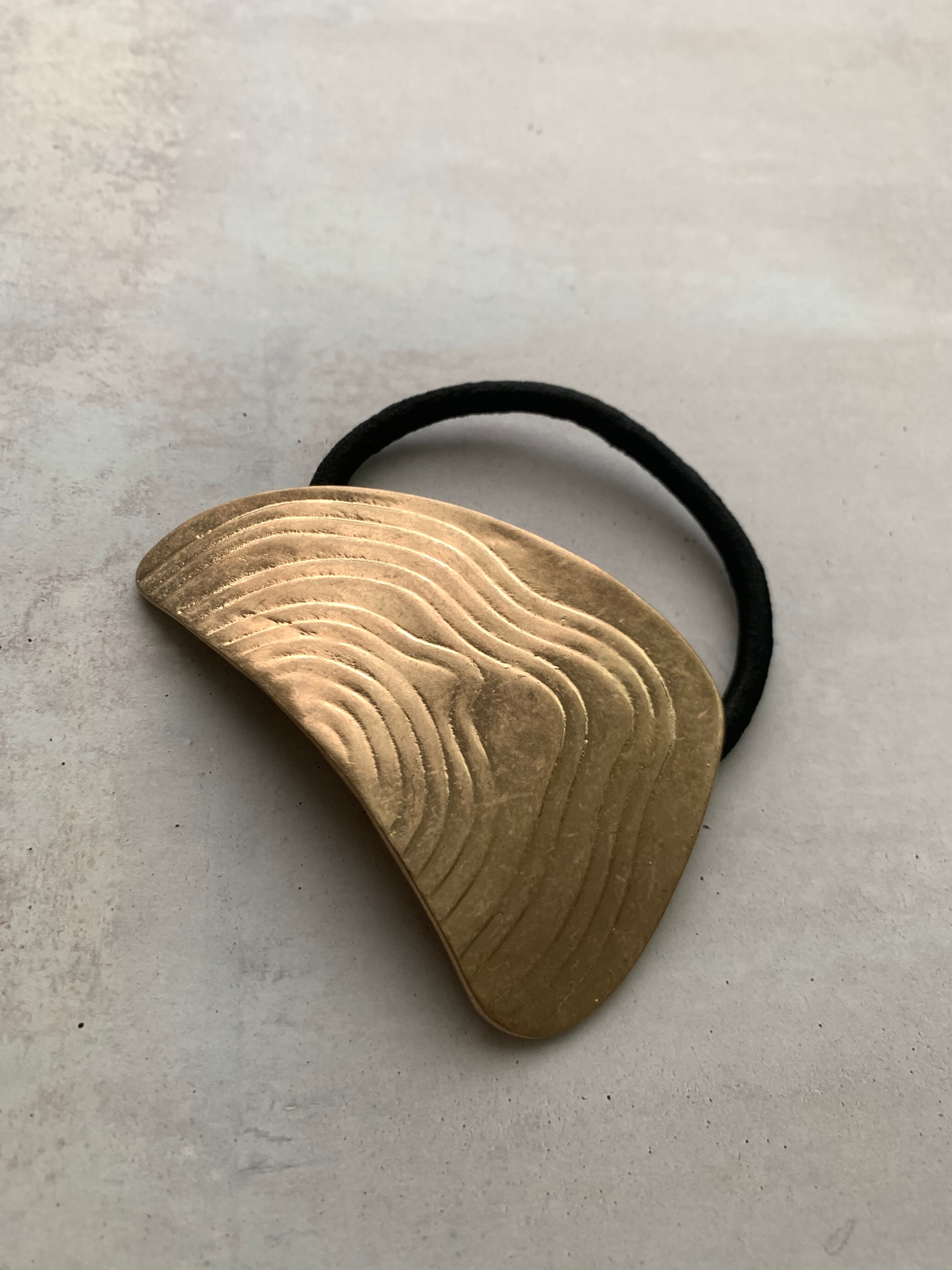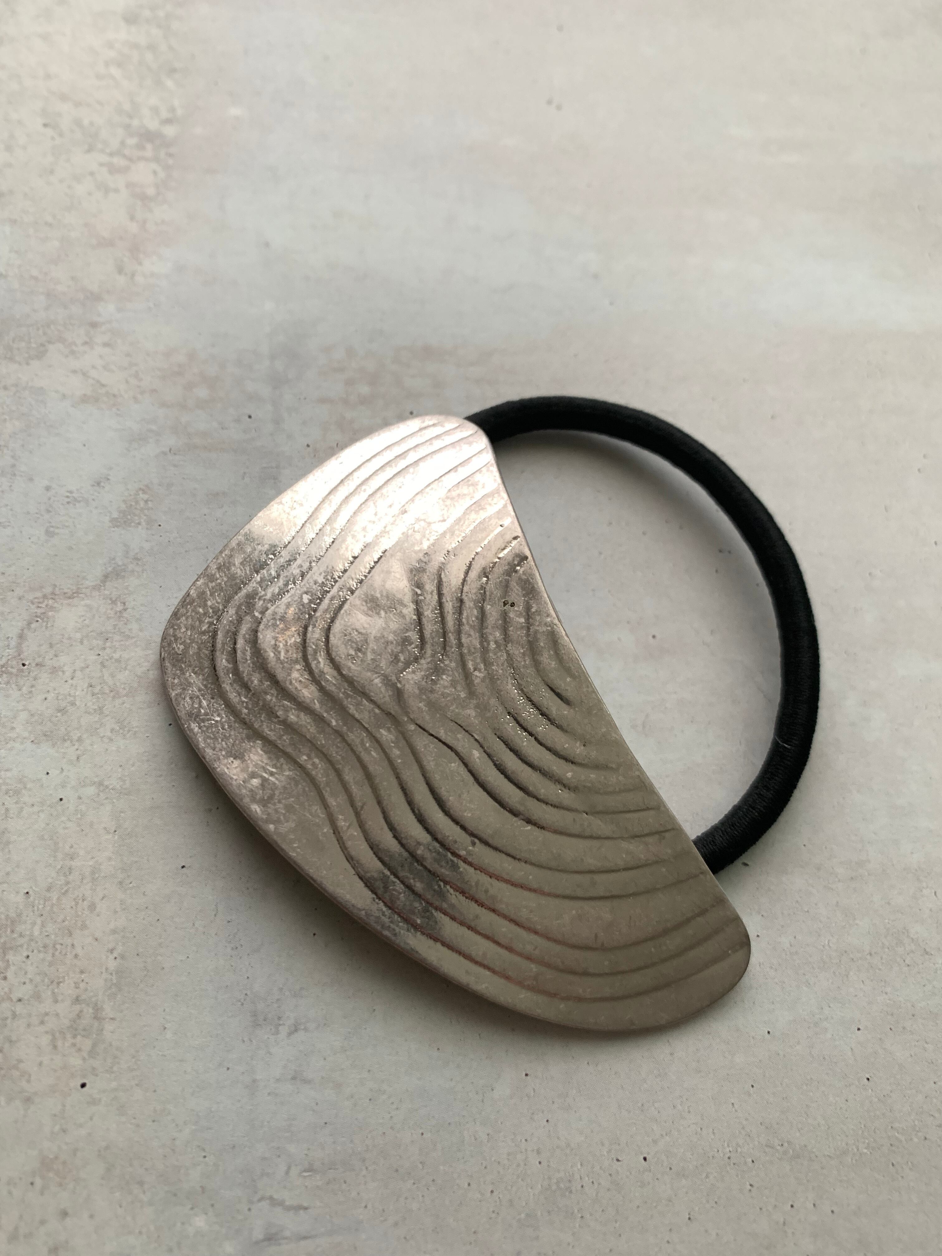 地層をイメージしたようなメタルプレートのヘアゴム。